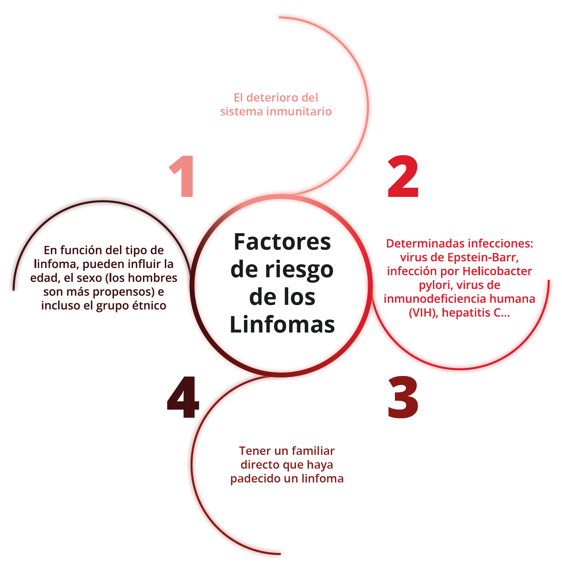 Los motivos que provocan la degeneración a células malignas de los linfocitos, y con ello la aparición de linfomas, se desconocen en la actualidad. Sí se han detectado factores que incrementan el riesgo4-5.
